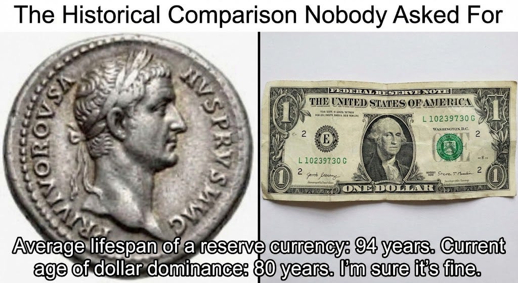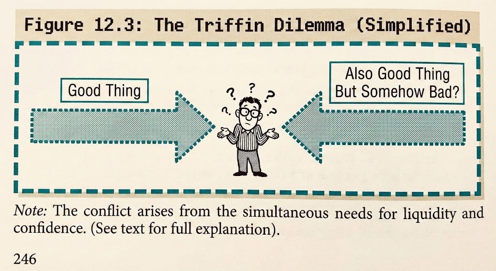 Anyway, that’s 2,400 words on international monetary policy by a guy who had to Google “Triffin dilemma” three times while writing this. Subscribe for more.