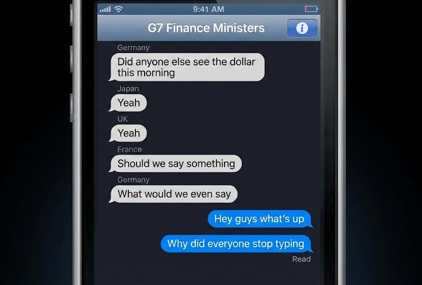 But if the dollar weakens because global investors look at American policy and think, “What in the fresh hell is going on over there?”—if it weakens because of what another analyst called “the haphazard nature of policy in this administration”—then that’s... less good. That’s the market rendering a verdict, and the verdict is: we are concerned.